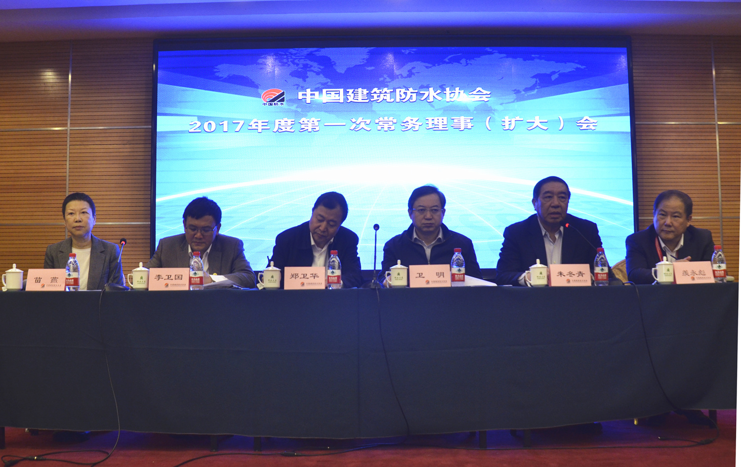 為探討行業(yè)全產(chǎn)業(yè)鏈質(zhì)量提升機(jī)制,介紹相關(guān)產(chǎn)業(yè)政策,4月10日上午,中國(guó)建筑防水協(xié)會(huì)2017年度第一次常務(wù)理事(擴(kuò)大)會(huì)在北京湖北大廈召開。質(zhì)檢總局產(chǎn)品質(zhì)量監(jiān)督司巡視員鄭衛(wèi)華,住建部標(biāo)準(zhǔn)定額司副巡視員衛(wèi)明,中國(guó)建筑防水協(xié)會(huì)會(huì)長(zhǎng)李衛(wèi)國(guó)、秘書長(zhǎng)朱冬青、副會(huì)長(zhǎng)羨永彪等領(lǐng)導(dǎo),以及協(xié)會(huì)正副會(huì)長(zhǎng)、常務(wù)理事、各分會(huì)負(fù)責(zé)人及地方防水社團(tuán)組織負(fù)責(zé)人等共百余人出席了此次會(huì)議。會(huì)議由中國(guó)建筑防水協(xié)會(huì)副會(huì)長(zhǎng)苗燕主持。我公司深圳市新黑豹建材有限公司也應(yīng)邀參加了此次會(huì)議。 |